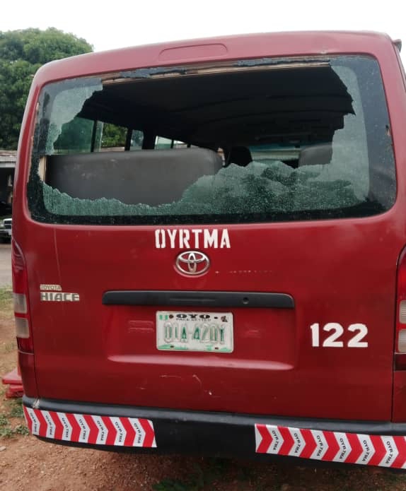 Five officials of the Oyo State Road Traffic Management Authority (OYRTMA) were injured, while several operational vehicles were damaged, following
